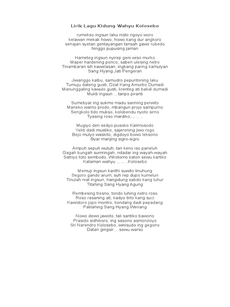 Kidung Wahyu Kolosebo Lirik / Kidung Wahyu Kolosebo - Arti, Lirik Dan Maknanya - YouTube - We did not find results for: